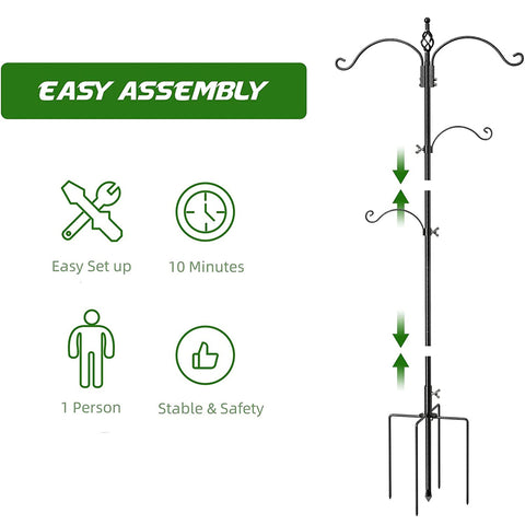 Upgraded Version Above the Market --- This bird feeder hanger features an advanced 5-prong anchor base - Extra Longer prongs and Double Locking Screws, WHICH to grip the ground firmly to maintain upright all the time. Prevent the bird feeder pole from wobble or snap off. Holding Weight per hook is more than the other brands of bird feeder pole.